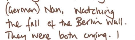 Staying up really, really late with my mum and my (German) Nan, watching the fall of the Berlin Wall. They were both crying. I didn’t understand it all, but I […]