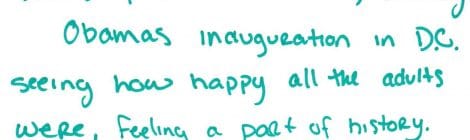 2008 Presidential election, attending Obamas inauguration in D.C. Seeing how happy all the adults were, feeling part of history.