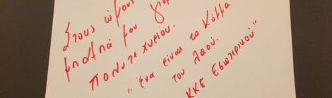 In my father’s arms, at the celebrations to honour the Polytechnic’s uprisings. “The people‘s party is one, KKE Esoterikou (KKE Interior)”[1] Στους ώμους του μπαμπά μου, γιορτή Πολυτεχνείου. «Ένα είναι […]