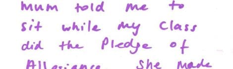 When I was 5 in North Carolina my mum told me to sit while my class did the Pledge of Allegiance. She made me promise never to join in.