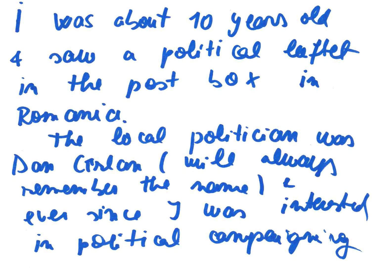 i was about 10 years old & saw a political leaflet in the post box in Romania.