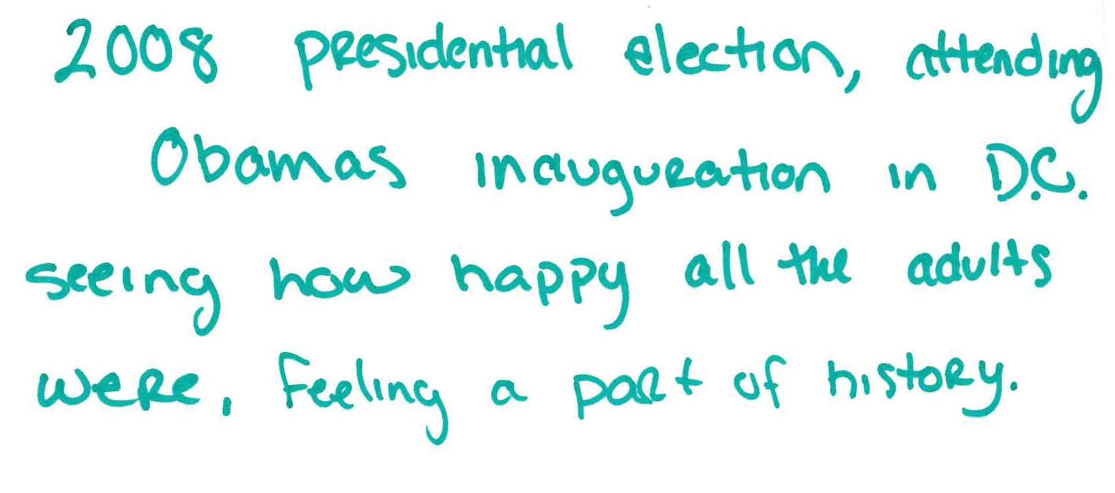 2008 Presidential election, attending Obamas inauguration in D.C.