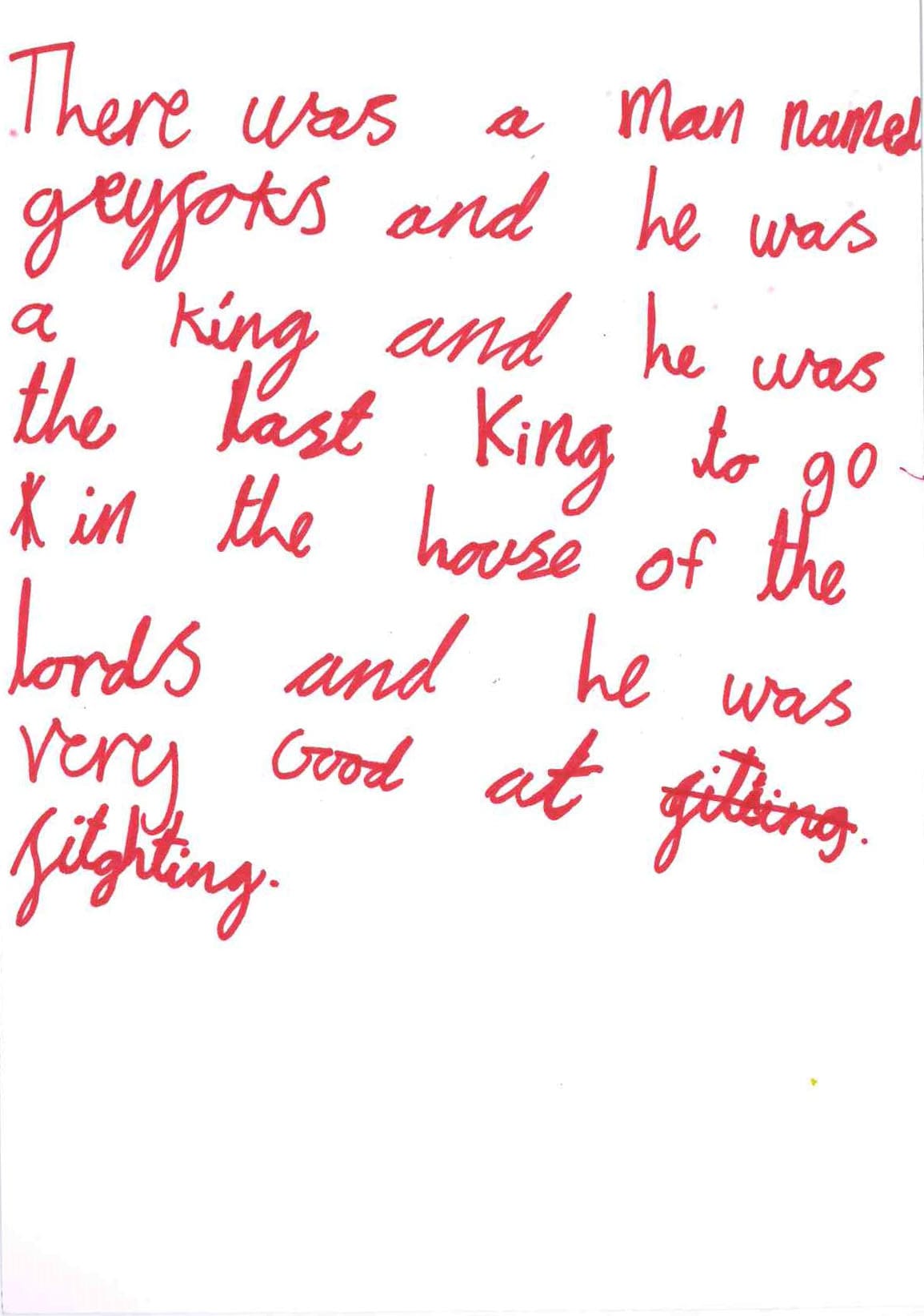 There was a man named geyforks and he was a king and he was the last king to go kill the house of lords and he was very good at fighting.