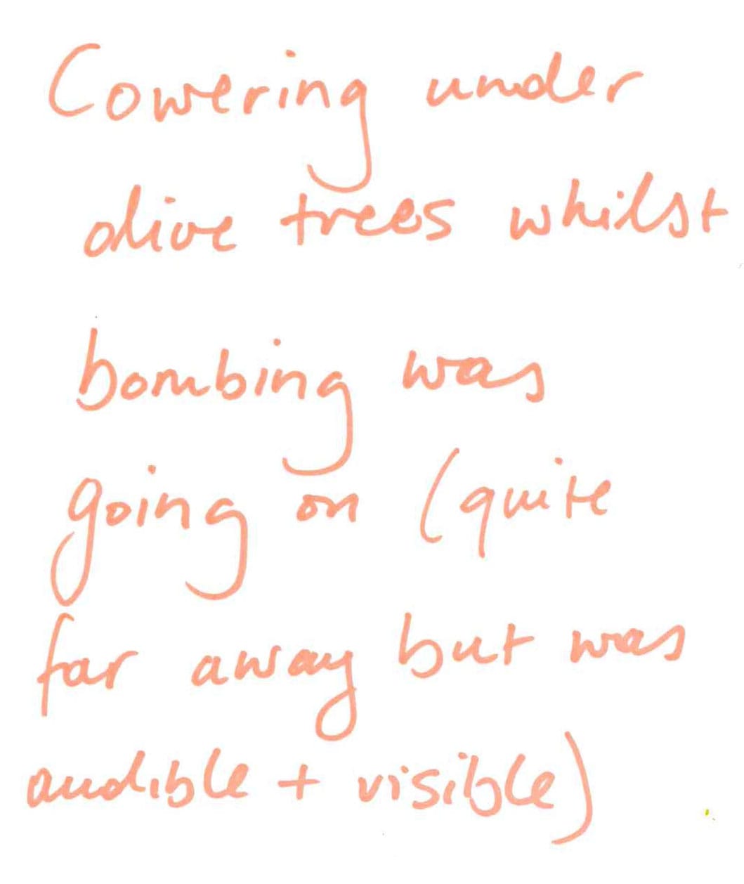 Cowering under olive trees whilst bombing was going on (quite far away but was audible + visible)