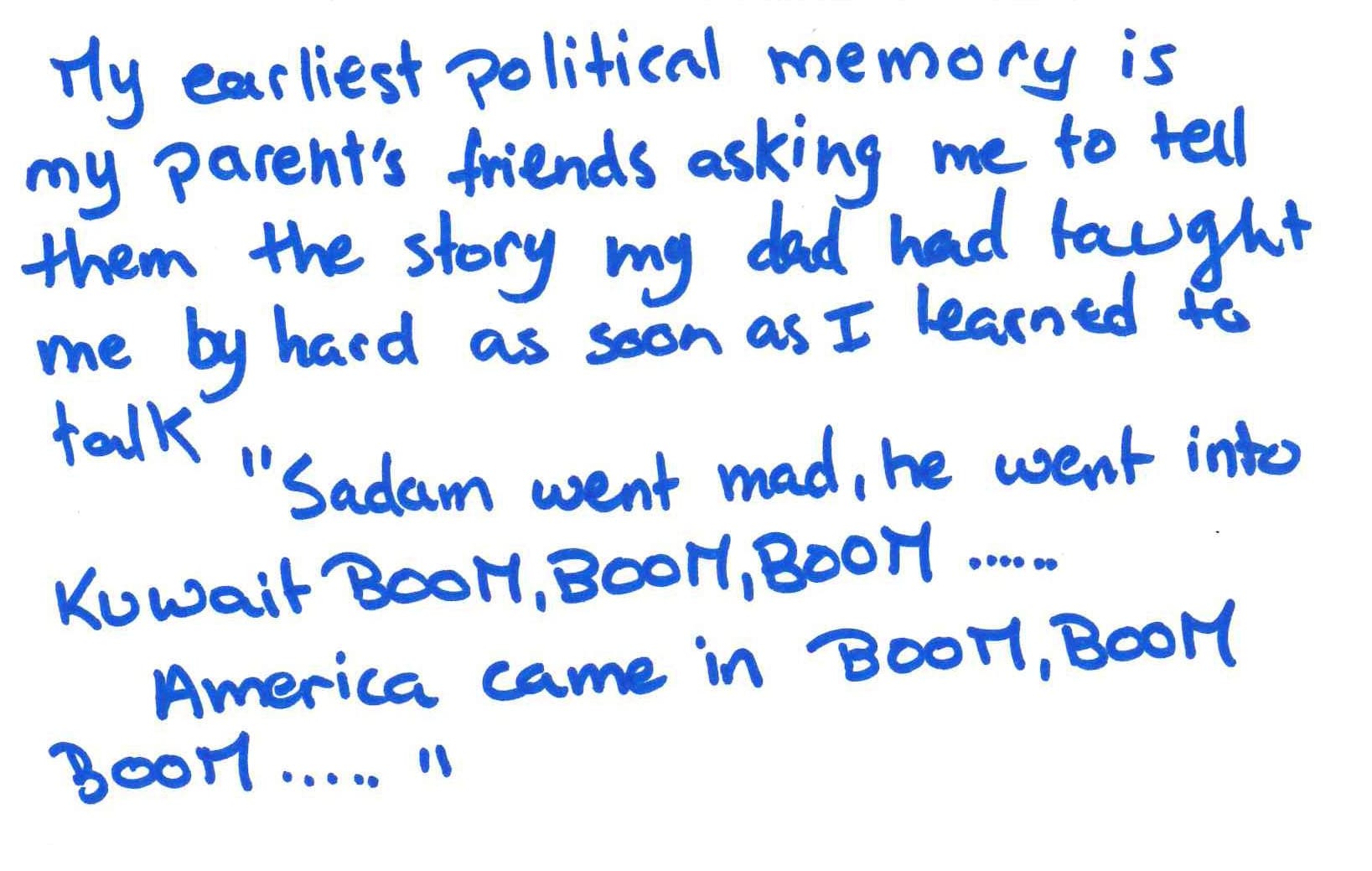 “Sadam went mad, he went into Kuwait BOOM, BOOM, BOOM…