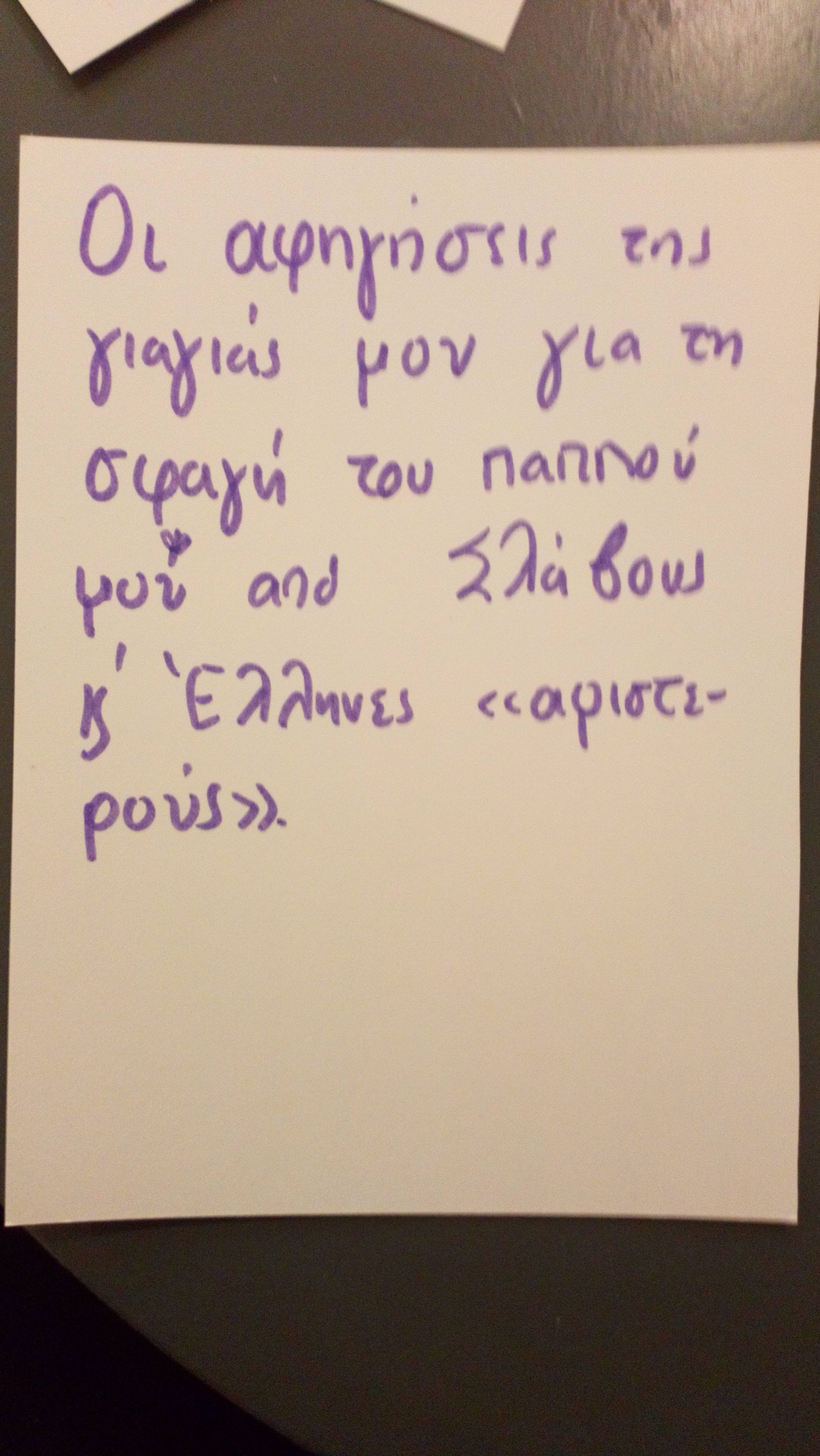 My grandmother’s narrations about how my grandfather was slaughtered by Slavs and Greek “leftists”.