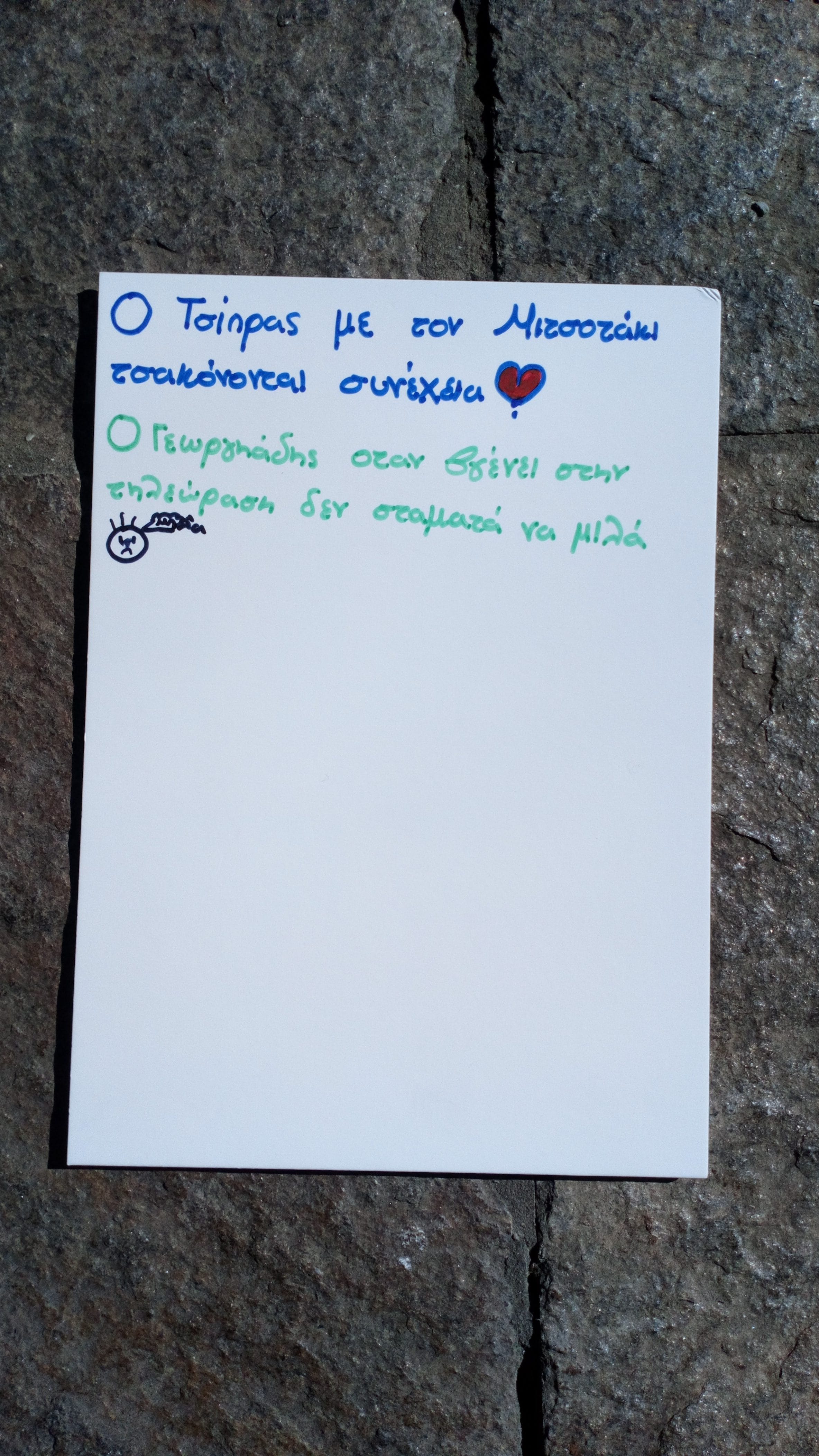 Tsipras and Mitsotakis are always fighting. Georgiadis appears on TV and he never stops talking[1].