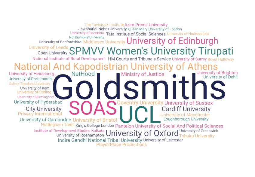 Across the four workshops we worked with over a hundred researchers from a number of institutions, sectors and organisations, including: