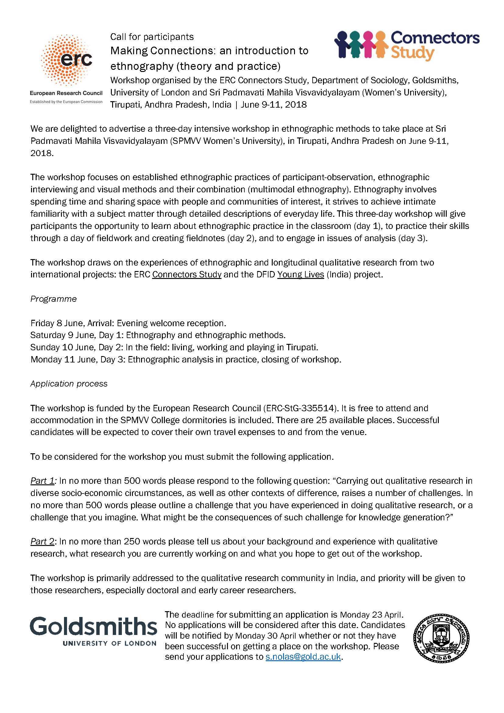 Following the success of the Making Connections workshops in London and Athens, the Connectors team organised an extended version of the Making Connections workshop in Tirupati, Andhra Pradesh (June 2018), in collaboration with Sri Padmavati Mahila Visvavidyalayam (SPMVV Women’s University).