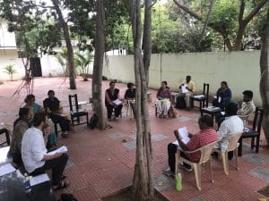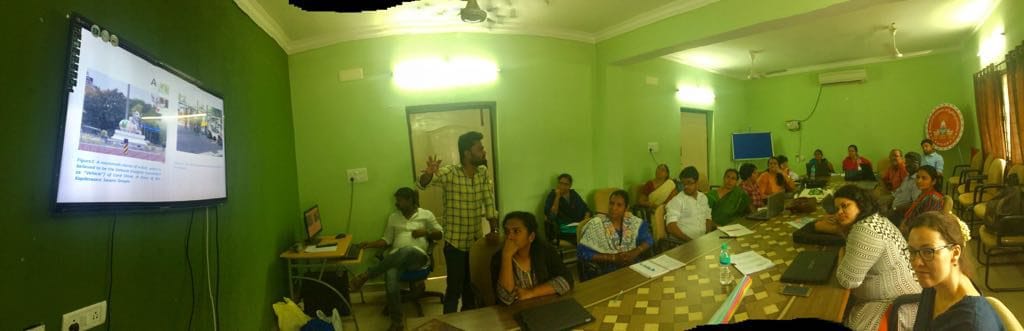 In Tirupati, we were able to run the same workshop but over a three-day period. The workshop was hosted by SPMVV Women’s University in Tirupati, Andhra Pradesh in collaboration with our colleagues there, Professor Uma Vennam and Madhavi Latha. Having three days meant that we were able to take more time over introductions to different methods that might be used in multimodal ethnographic research, and send the group into ‘the field’ for a day (the bus stop, the marketplace, the temple and a local community) to investigate what it might mean to live, work and play in Tirupati.