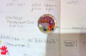 In Athens, many children interlocutors have been showing and discussing their stickers collection with Christos. Through the many discussions, Christos has been thinking how stickers may be seen as a sort of a currency – to be collected, exchanged, gifted or safely stored. In many occasions children gave Christos stickers as presents – either for himself or with the request to give it to his son. Fotini, a girl of eight was often showing Christos her collection of stickers and discussing those, and in one visit, she intervened with Christos note-taking of their discussions, and stick some stickers on his notebook as examples, to better describe what it was all about.